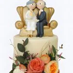 Торт на золотую свадьбу с розами и фигурками