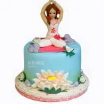 Нежный голубой торт с изящной фигуркой девушки в позе лотоса создает атмосферу гармонии и спокойствия. Пастельные оттенки синего и белого переплетаются в плавных линиях, напоминая водную гладь. Прозрачные капли словно застыли в воздухе, добавляя композиции волшебства. Тема медитации и духовного равновесия читается в каждой детали этого утонченного десерта.
