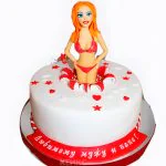 Белый торт с девушкой в красном купальнике