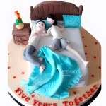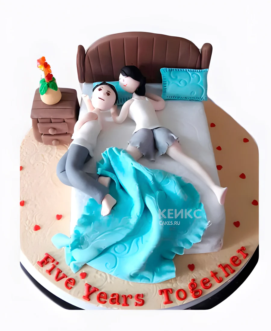 Торт в виде кровати с голубым одеялком