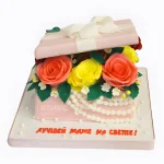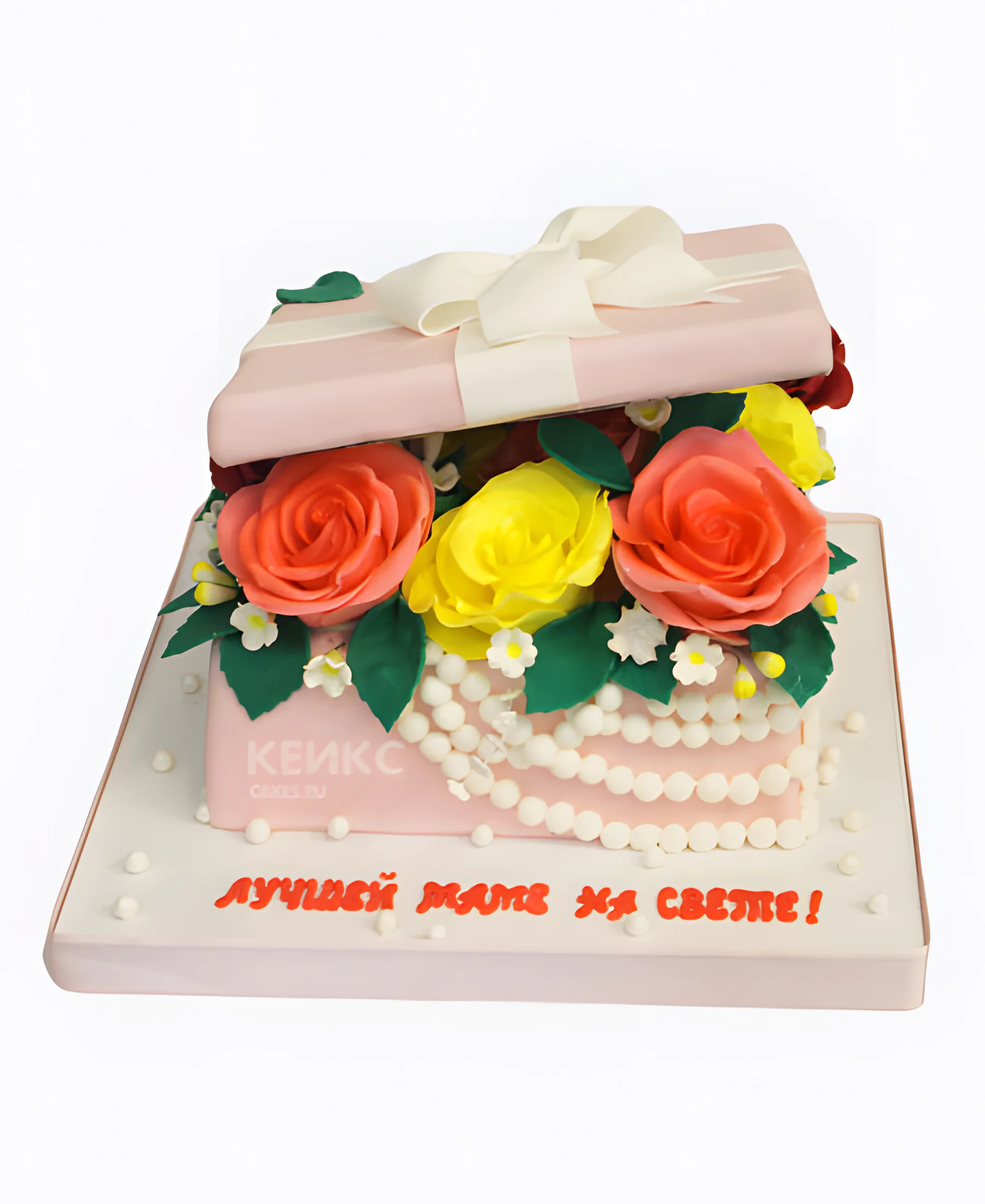Торт в виде нежно-розовой коробки с цветами