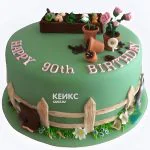 Торт огород с поздравительной надписью и цветами в горшках