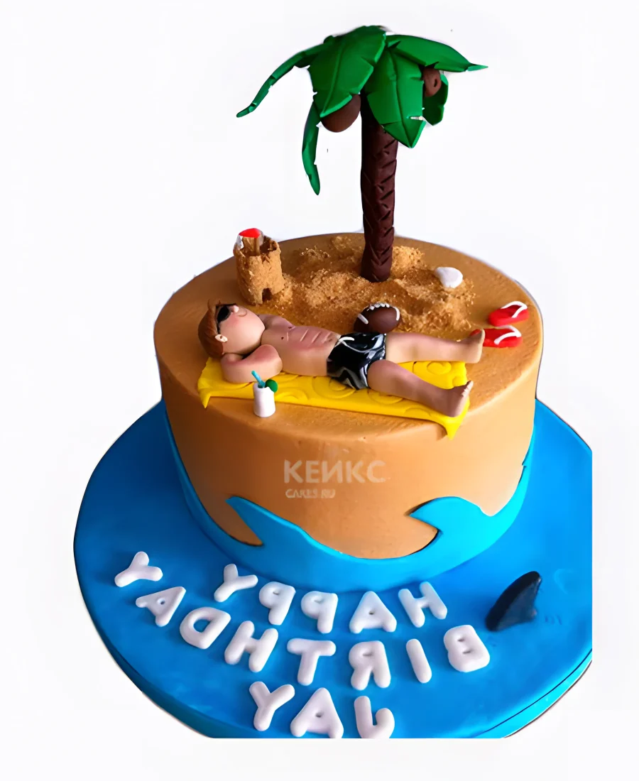 Торт с пляжем, островом и пальмой