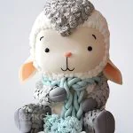 Торт в виде овечки с голубым шарфиком