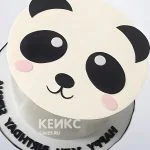 Очаровательный детский торт в виде круглой основы, полностью покрытой гладкой белой мастикой. Главный акцент — милая аппликация в виде улыбающейся панды с большими черными глазами и розовыми щечками. Простой, но очень выразительный дизайн идеально подходит для празднования дня рождения. Одноярусная конструкция делает торт удобным для сервировки.