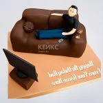 Этот торт — настоящая скульптура из мастики, которая моментально вызывает улыбку. На нем изображен расслабленный папа, удобно устроившийся на диване. Детали проработаны с юмором и теплотой: складки одежды, подушки, даже пульт рядом. Мягкие бежевые и коричневые тона создают уютную атмосферу домашнего отдыха. Торт выглядит настолько реалистично, что кажется, будто фигурка вот-вот заснет. Отличный способ с любовью и иронией поздравить самого важного мужчину в семье.