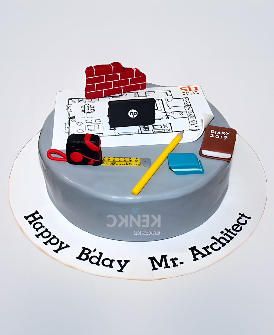 Серый торт для строителя с надписью
