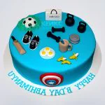 Торт голубой гирями и надписью