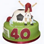 Зеленый торт с футбольным мячом и футболисткой