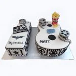 Торт в виде цифр со стаканчиком с попкорном и кинолентой