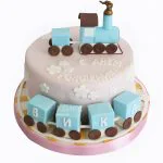 Нежно-розовый торт с голубым паровозом