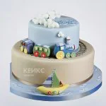 Стильный торт с паровозиком и корабликом