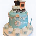 Торт паровозик в голубом цвете с надписью