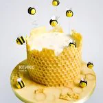 Этот очаровательный торт украшен реалистичными медовыми сотами из сахарной пудры, которые создают эффект натурального улья. На поверхности рассажены милые фигурки пчелок из мастики с тончайшими деталями крылышек. Золотистые акценты и нежные цветочные элементы дополняют природную тематику десерта. Торт имеет несколько ярусов, украшенных ажурной сахарной вязью, напоминающей узоры сот.