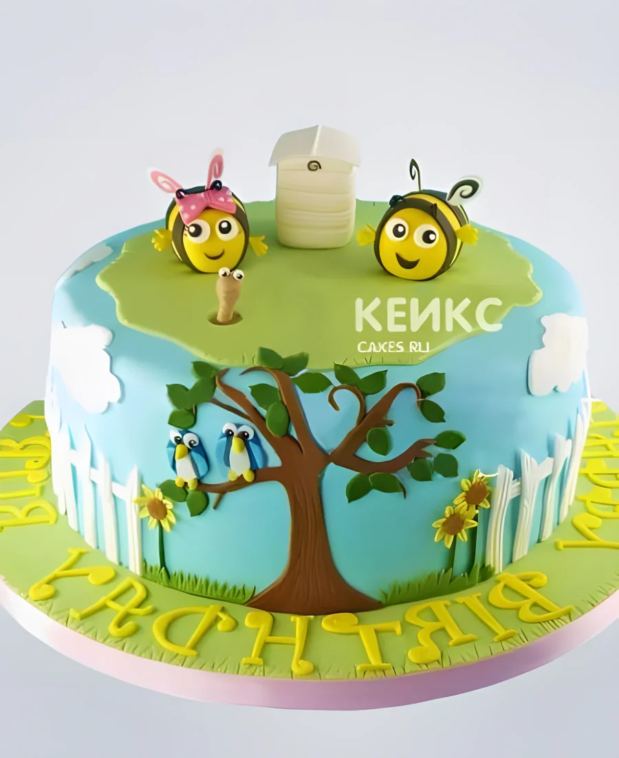 Торт с пчелками на лужайке