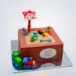 Торт песочница с игрушками и паровозиком