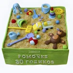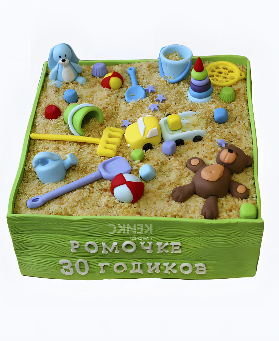 Зеленый торт в виде песочницы с игрушками