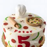 Сочный круглый торт в виде аппетитной пиццы! Яркая мастика искусно имитирует тонкое тесто, расплавленный сыр и аппетитные ломтики пепперони. Украшение цифрой добавляет праздничный акцент. Живые цвета и реалистичные детали создают впечатление настоящего итальянского блюда.