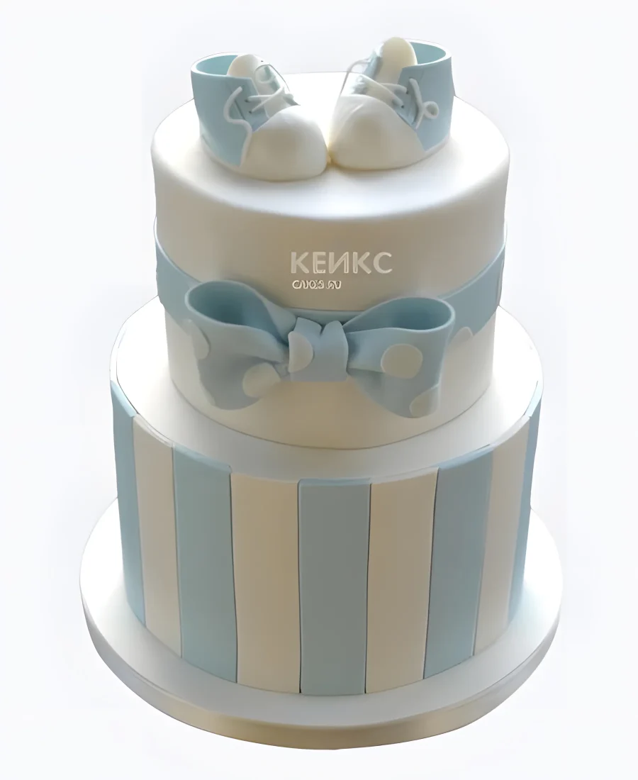 Торт с голубыми ботинками и бантом