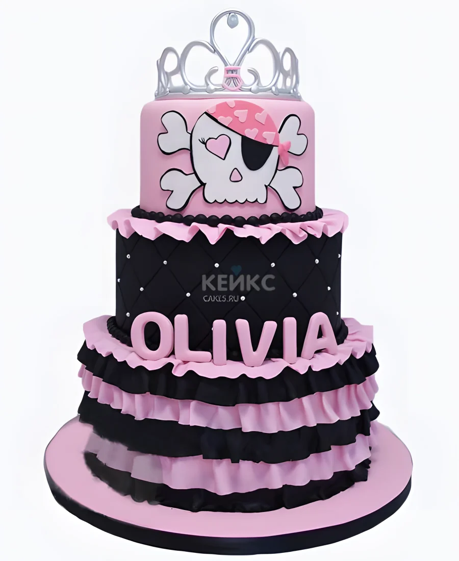 Черно-розовый торт с черепом и короной