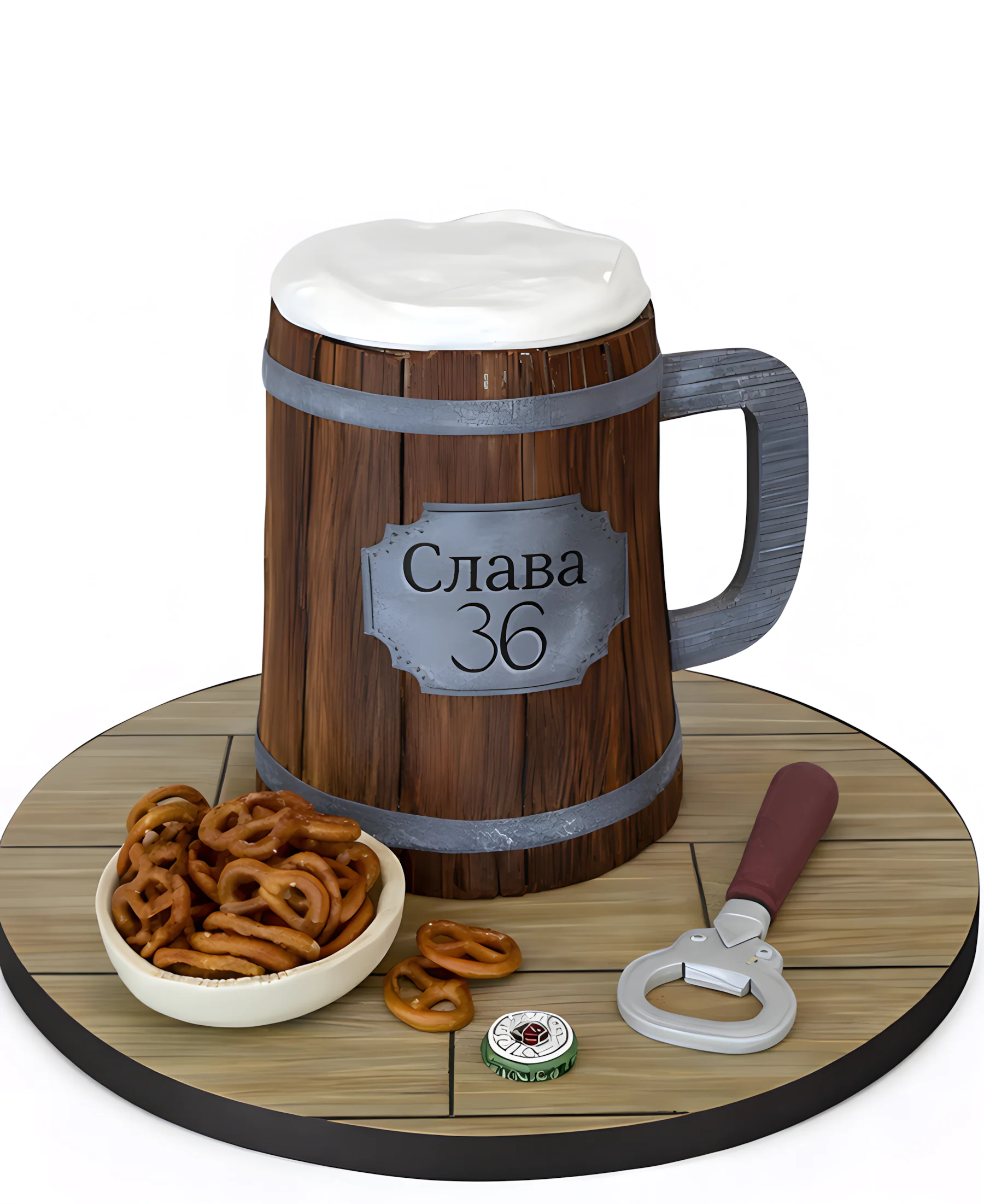 Торт в виде деревянной кружки с пивом
