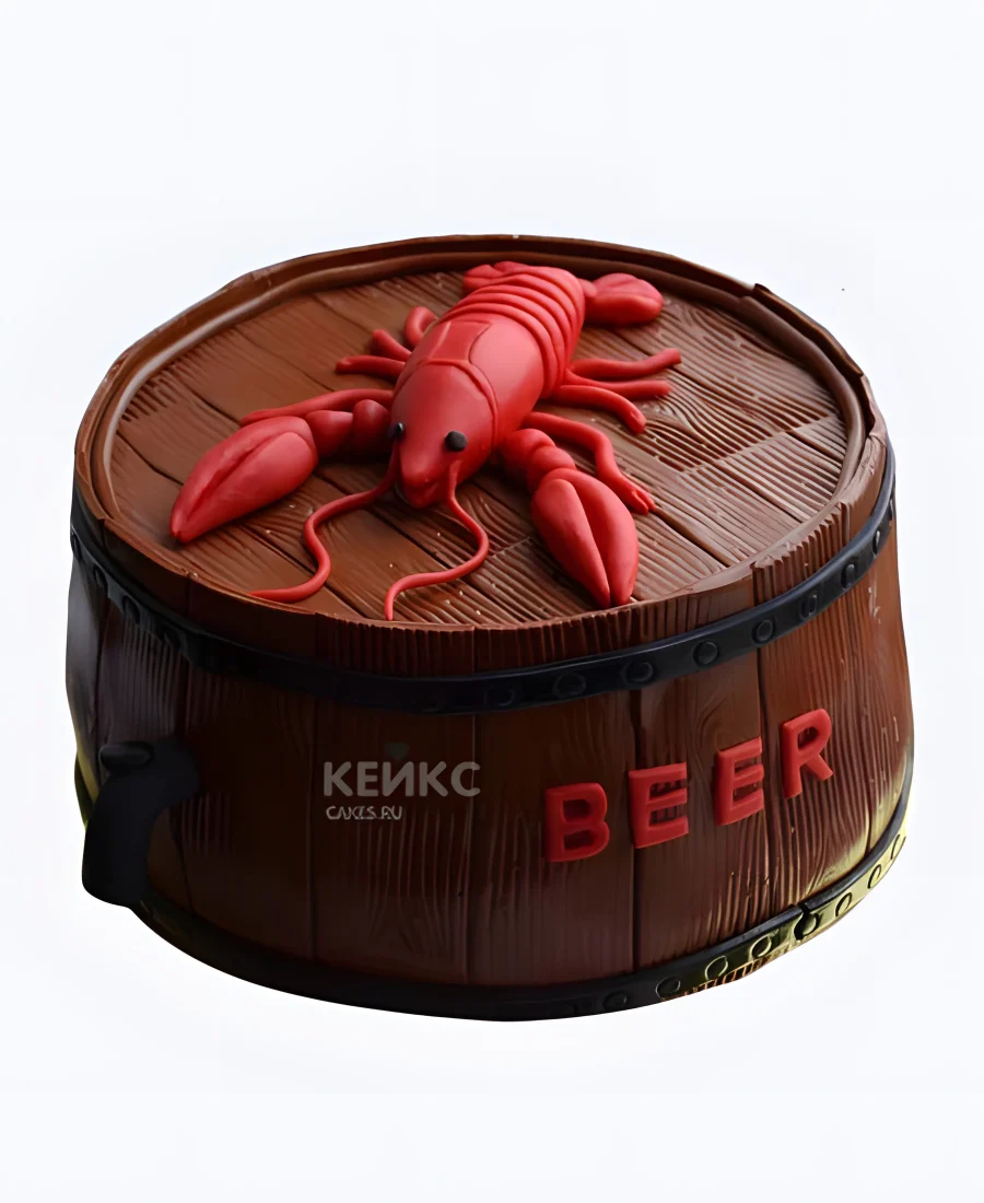 Торт в виде бочки пива с раками