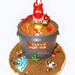 Этот торт — настоящая шутка в кондитерском исполнении! На круглой основе красуется объемная кружка пива с густой пеной, а рядом — забавные съедобные раки, будто только что вылезшие из реки. Яркие красно-оранжевые оттенки панцирей эффектно контрастируют с золотистым «напитком». Каждая деталь проработана с юмором и вниманием к мелочам — от пузырьков в «пиве» до клешней раков. Такой торт моментально создает летнее настроение и вызывает улыбку!