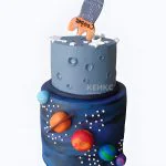 Космический торт с планетами и ракетой