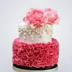 Яркий бело-розовый торт с рюшами и бусинами