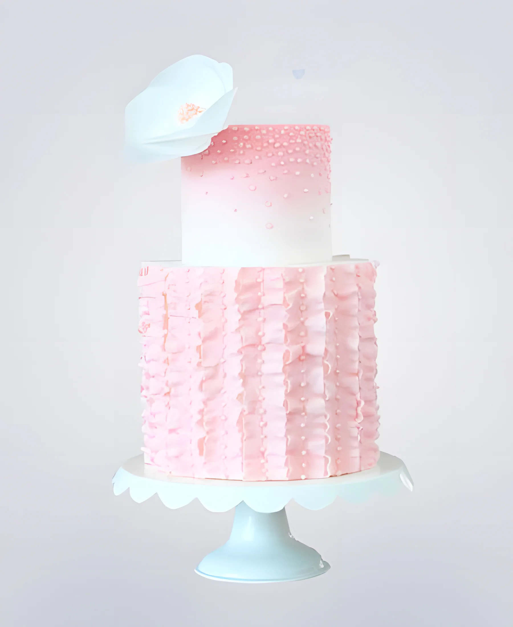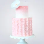 Двухъярусный розовый торт с бусинами и белым цветком
