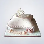 Торт в виде подушки кремового цвета с короной и надписью