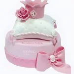 Милый торт с подушкой и короной в розовых тонах