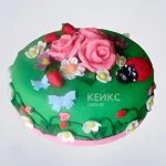 Торт с розами и бабочками на полянке