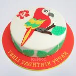 Белый торт с попугаем и надписью