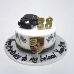Торт для мужчины с эмблемой и машинкой Порше из мастики