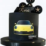 Торт порше с желтой машиной