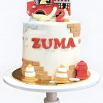Красочный торт в виде пожарной машины с яркими деталями: вращающимися колесами, лестницей и мигалкой. Сочно-красное покрытие контрастирует с черными и серебряными элементами. Забавная надпись «2 года» добавляет праздничного настроения. Игрушечный дизайн вызывает восторг и прекрасно подходит для детского праздника.