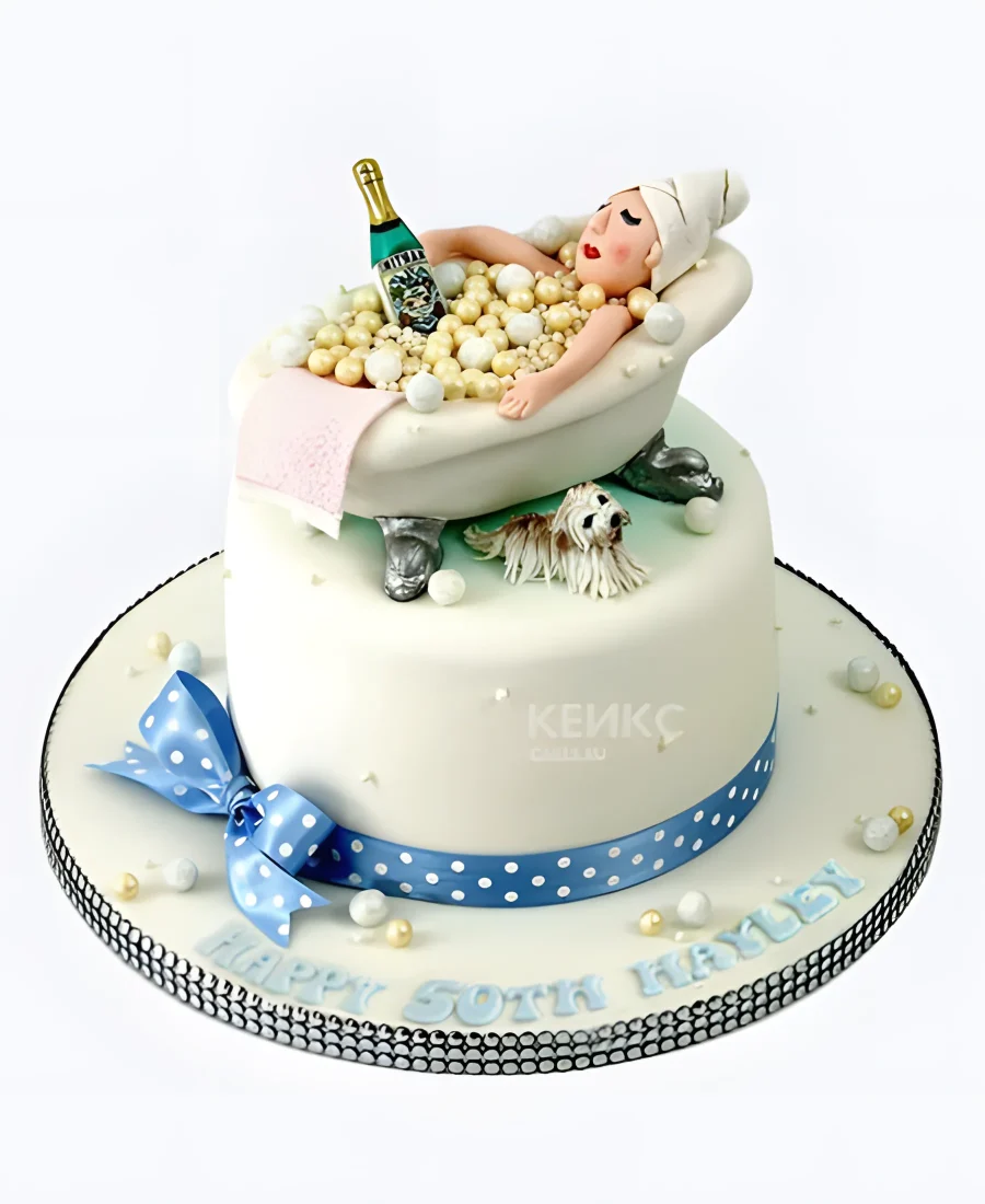 Белый торт с дамой в ванной