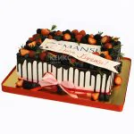 Прямоугольный торт с ягодами и шоколадной глазурью
