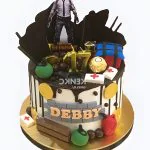 Этот торт — настоящая находка для фанатов PUBG! Круглый, с гладкой мастикой, он напоминает игровую локацию. Яркие аппликации с элементами игры — оружие, шлем, карта — создают динамичный образ. Контрастные цвета: зелёный, бежевый, чёрный — передают атмосферу боевой зоны. Детали проработаны так, будто их перенесли прямо с экрана. Лаконичный, но выразительный дизайн сразу привлекает внимание.