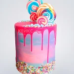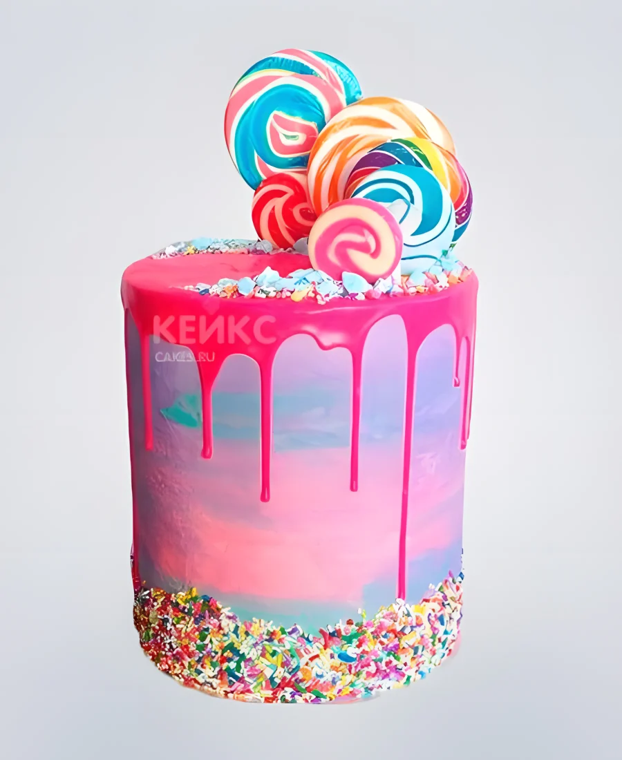 Розовый торт с леденцами