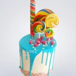 Голубой торт с леденцами и мастикой