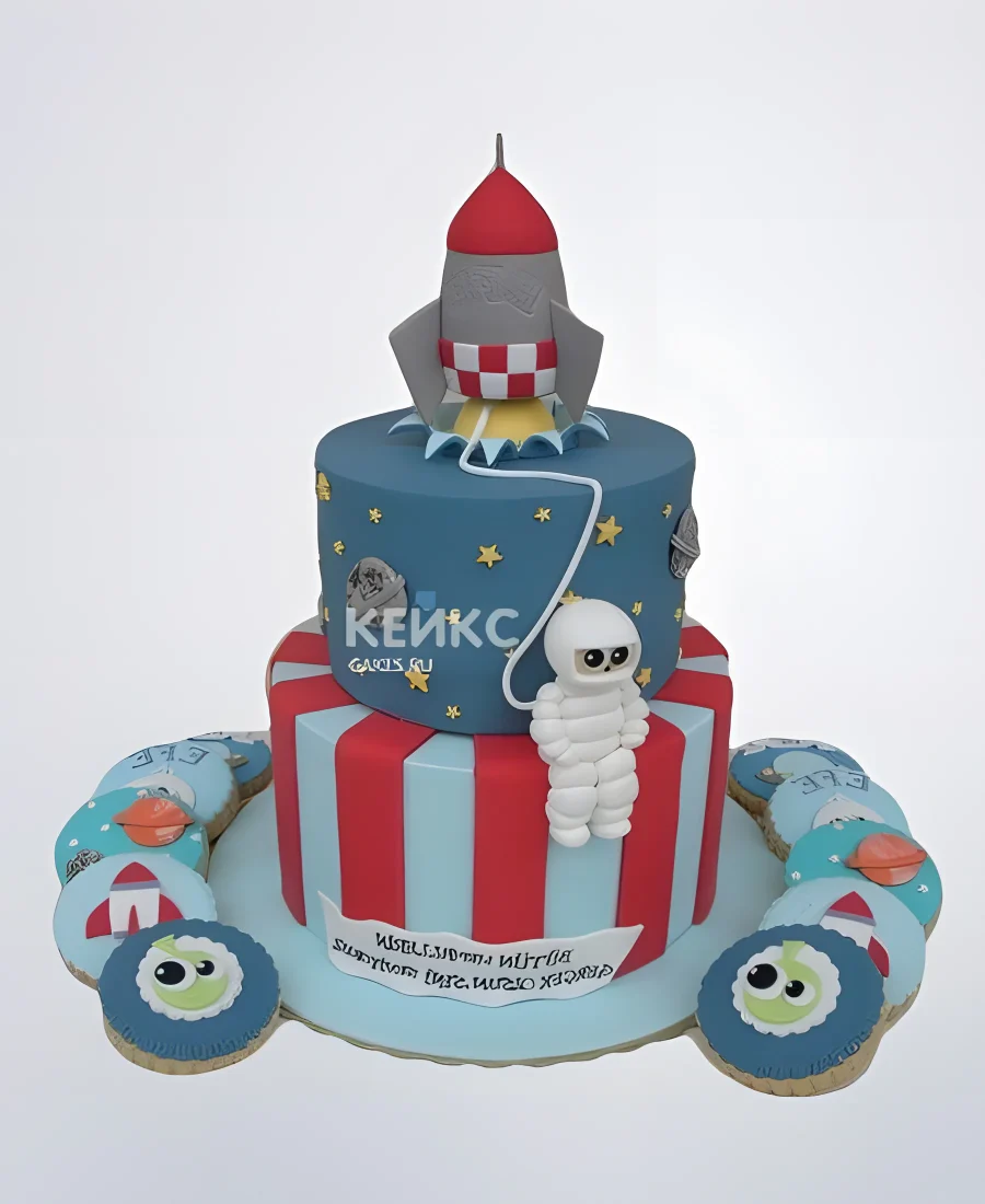 Торт ракета с космонавтом и красными полосками