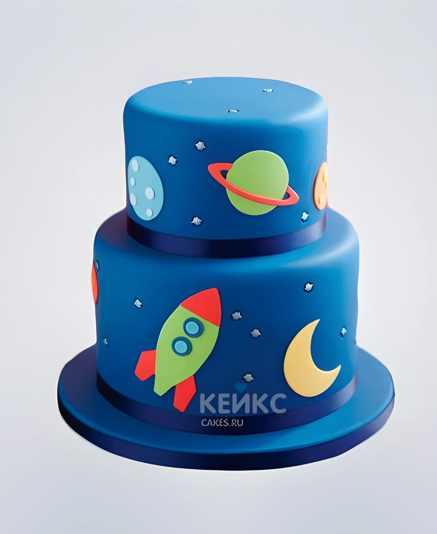 Синий торт с планетами для мальчика