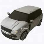 Серый 3D-торт в форме внедорожника выглядит стильно и реалистично. Матовое мастичное покрытие передаёт фактуру металла, а чёткие линии кузова подчёркивают сходство с настоящим автомобилем. Сдержанная цветовая гамма и внимание к деталям создают эффект миниатюрной копии. Такой торт станет ярким акцентом на празднике, посвящённом скорости и приключениям.