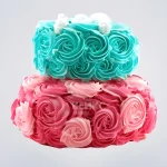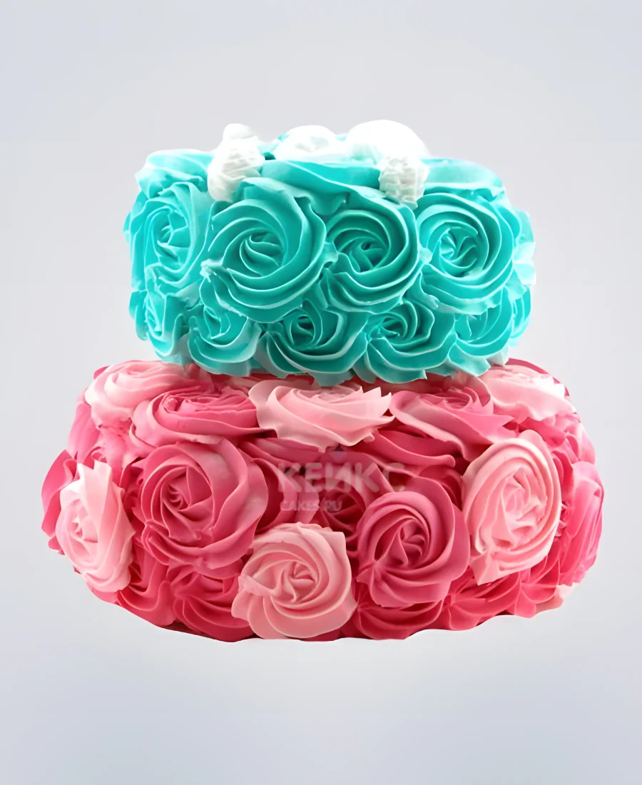 Яркий розово-бирюзовый торт из крема