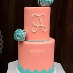 Торт розово-бирюзовый с инициалами