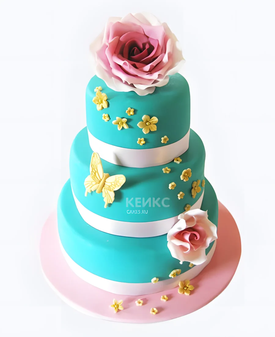 Торт розово голубой с бабочками