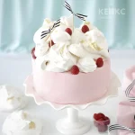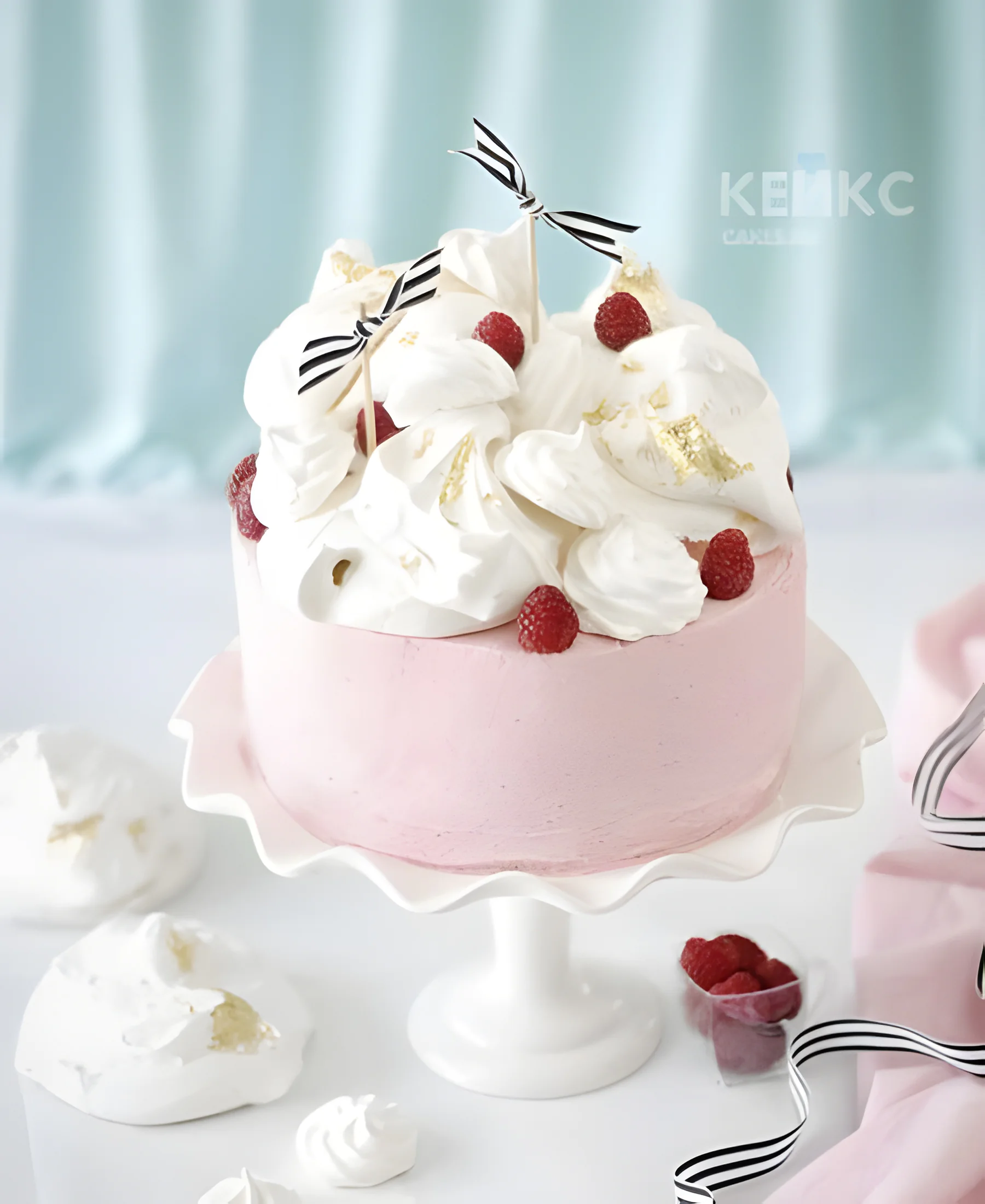 Розовый торт с зефиром и малиной