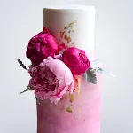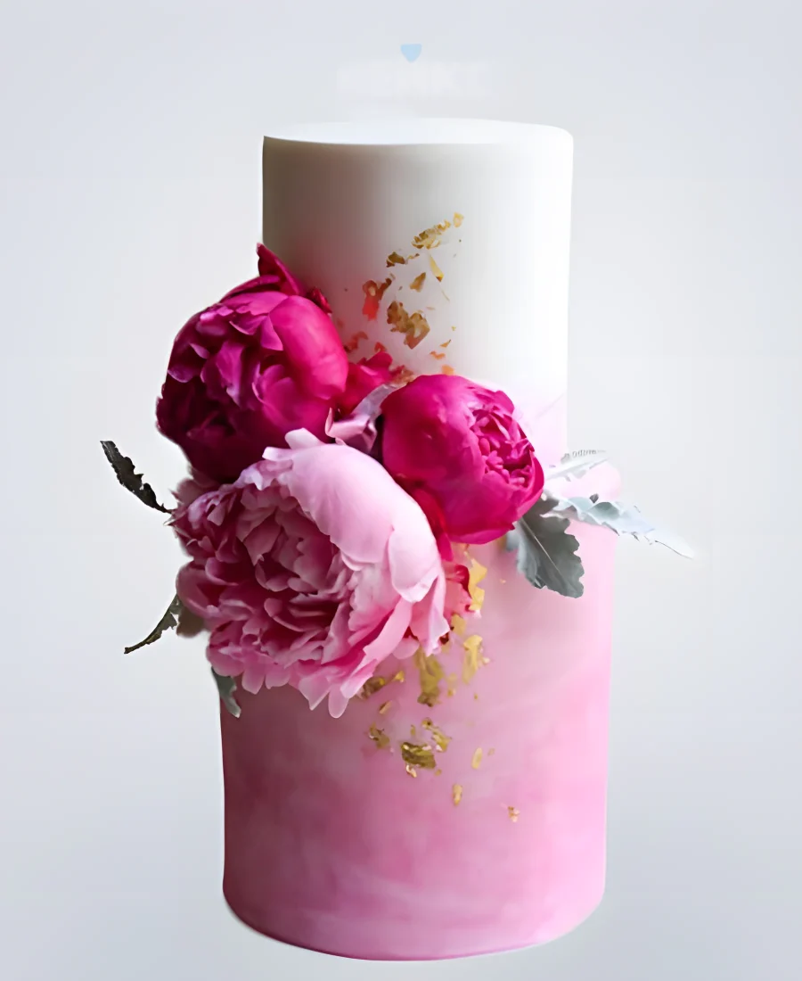 Бело-розовый торт с цветами